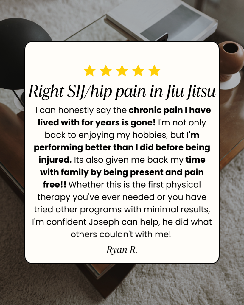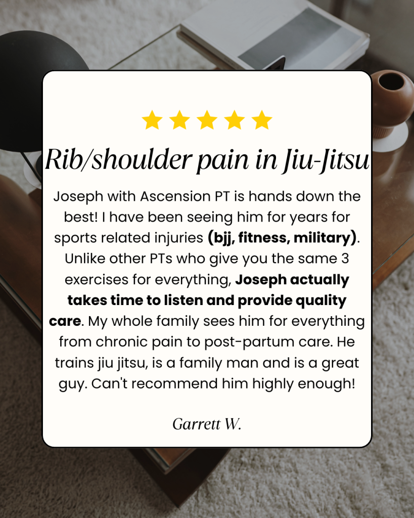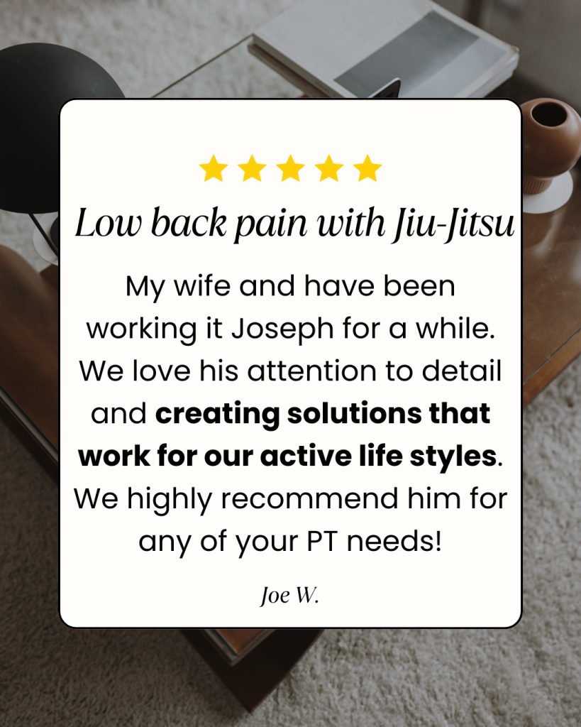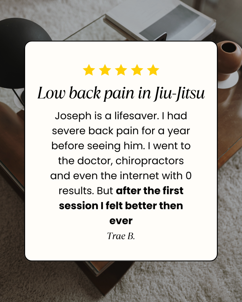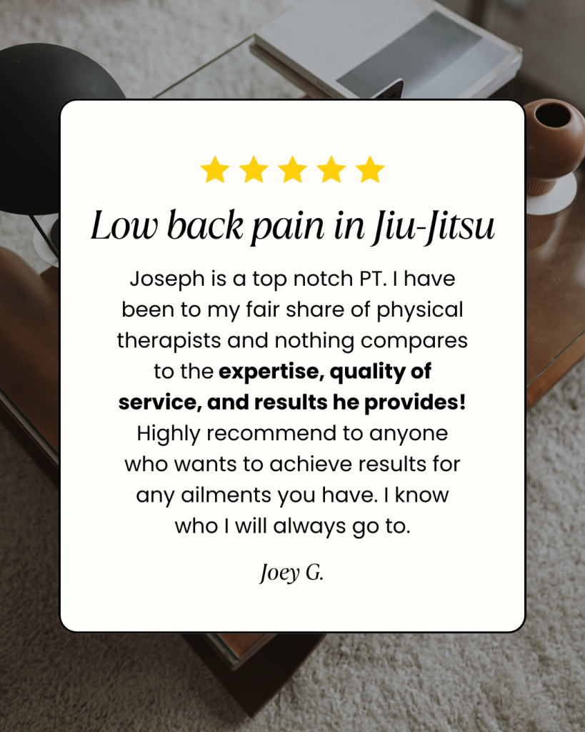 I specialize in treating jiu-jitsu athletes and high performing adults who want to return to sport and strength training at a high level — not just “feel a little better”.